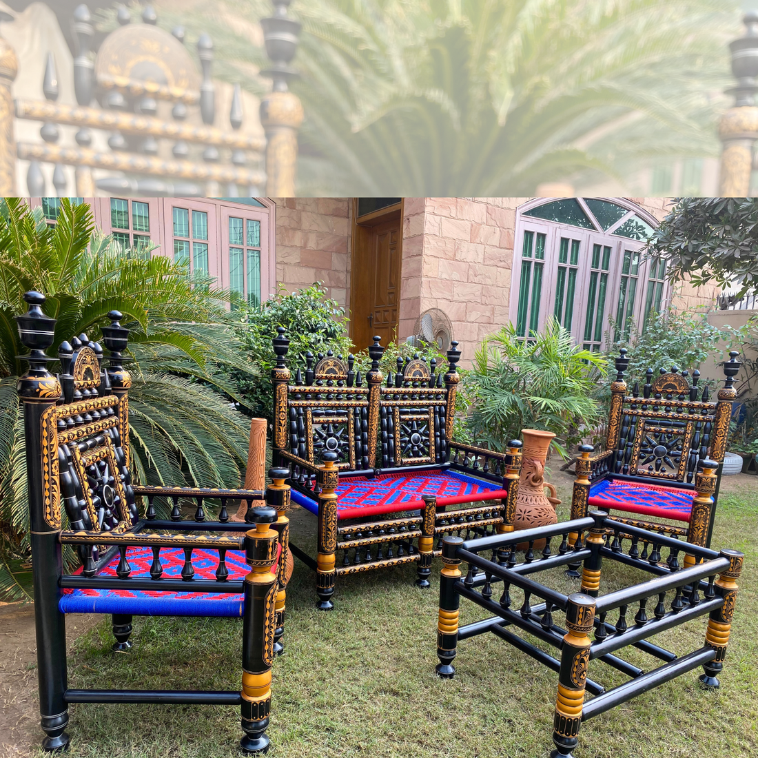 This is elegant art, premium quality antique style Swati Chair Set with Coffee Table, Which...