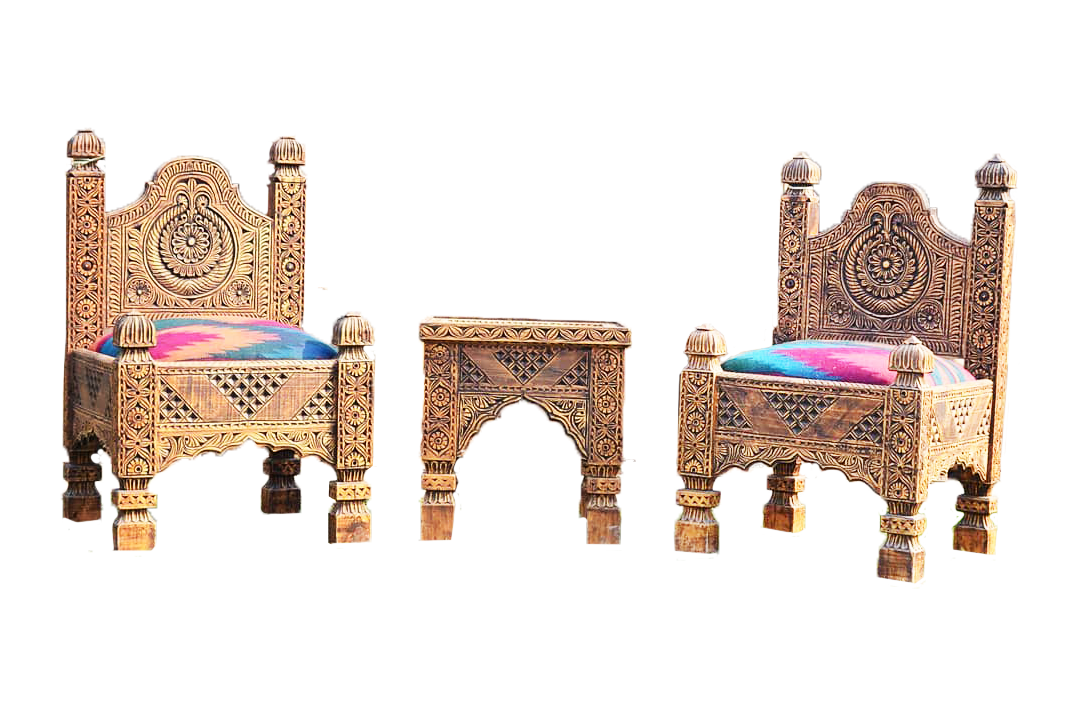 Original Swati Bedroom Chair Set 2 Chairand 1 Table, Hand Carved Design Original From Swat...