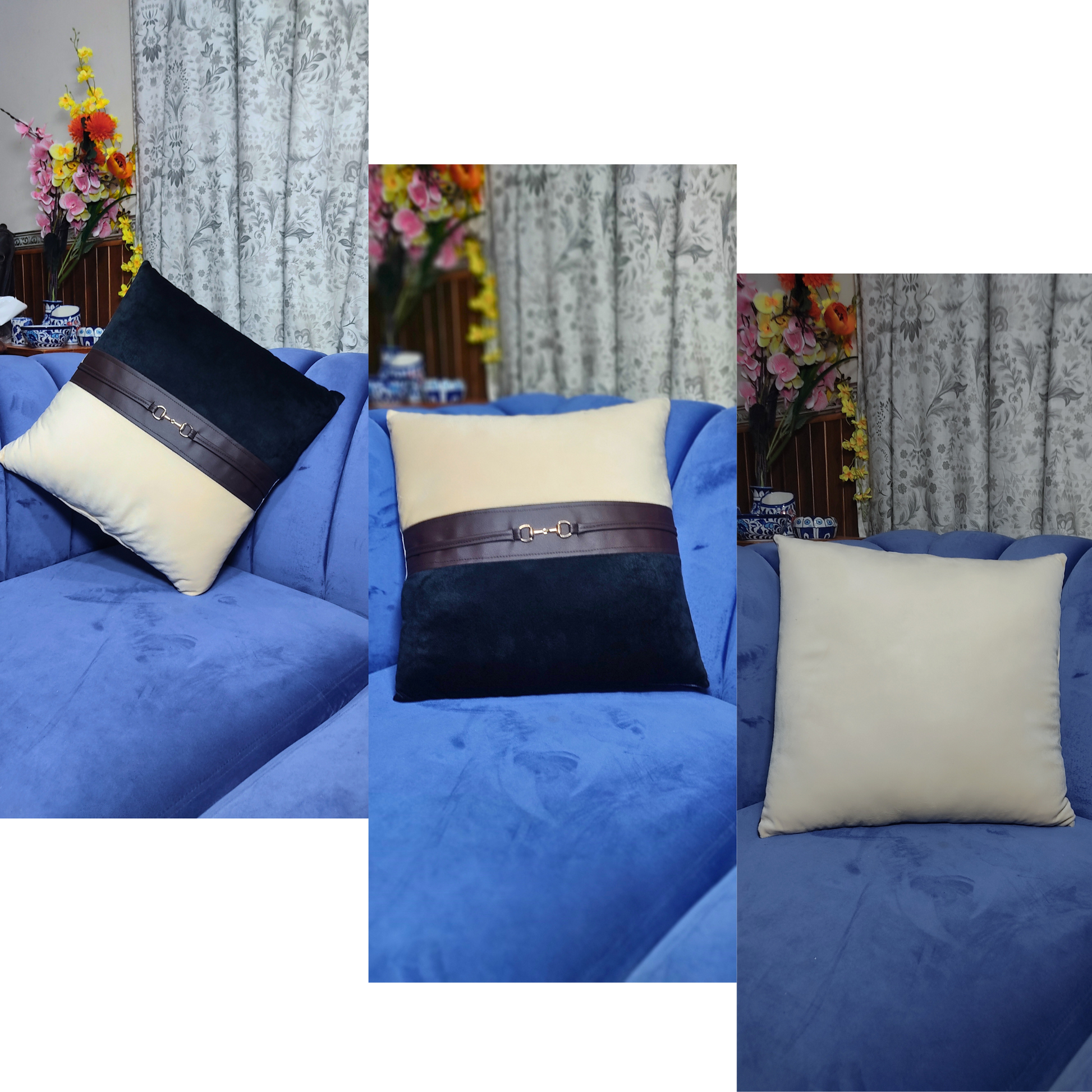Bring for you Best Quality Velvet Filled Cushion for comfort, style and durability, These filled cushion made from best quality velvet fabric with middle synthetic leather and metal hook.