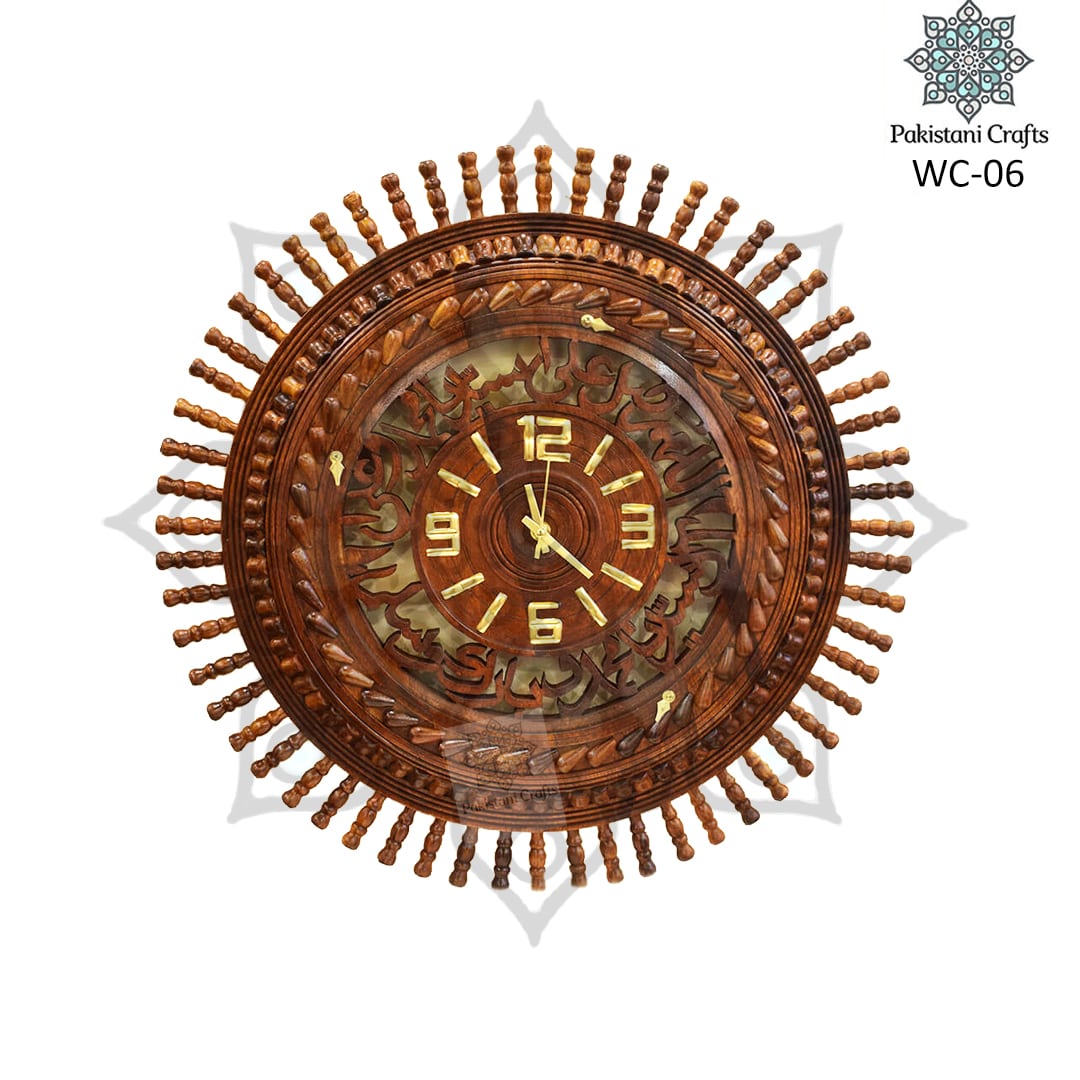 Wooden Carving Wall Clock With Handmade Tukri Work