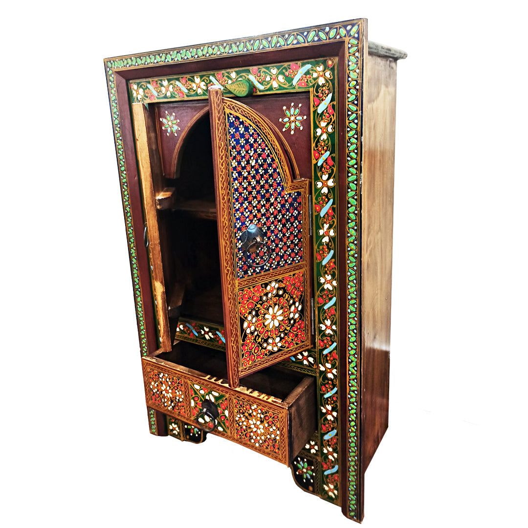 brings Hand Crafted Wooden Chester Double Door with Drawers Swati Furiture is the only way to prove the rich culture and asthetic sense of our atisans who pour in their work and portray on it. This Wooden Chester has double door with inside shelf. All handmade and hand painted work that also represent Mughal Art Work. This chester is best for home & office.
