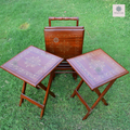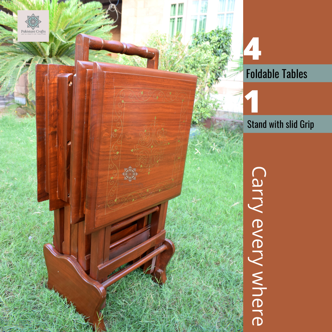 Handmade Picnic Table Set Of 4 Pure Sheesham Wood With Brass Inlay H.F