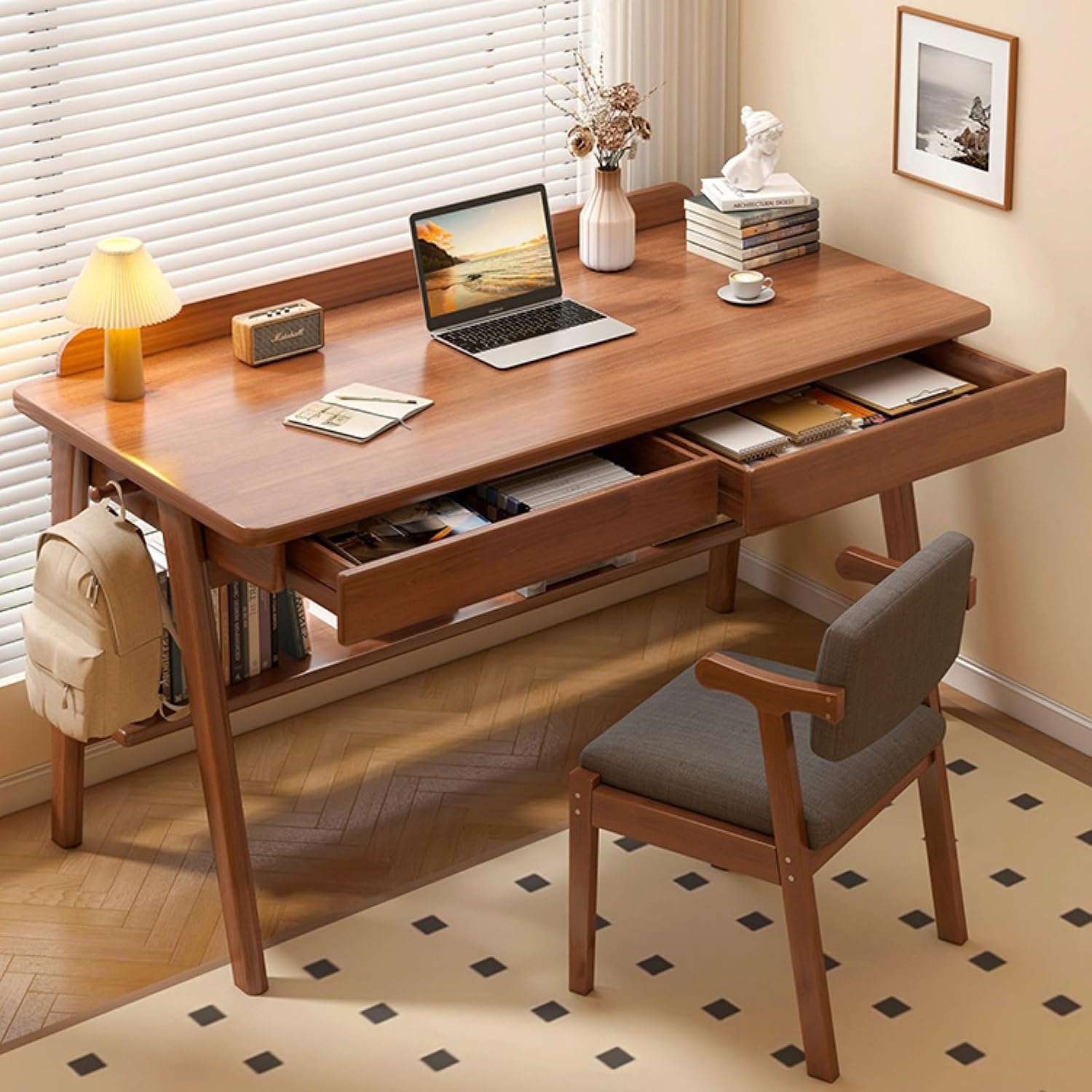 This Home Office Computer Desk combines modern design with functional features, making it perfect for any home office. With a spacious 39-inch surface, it provides ample room for all of your work essentials. The mid-century walnut finish adds a touch of sophistication, making it a stylish addition to any space.