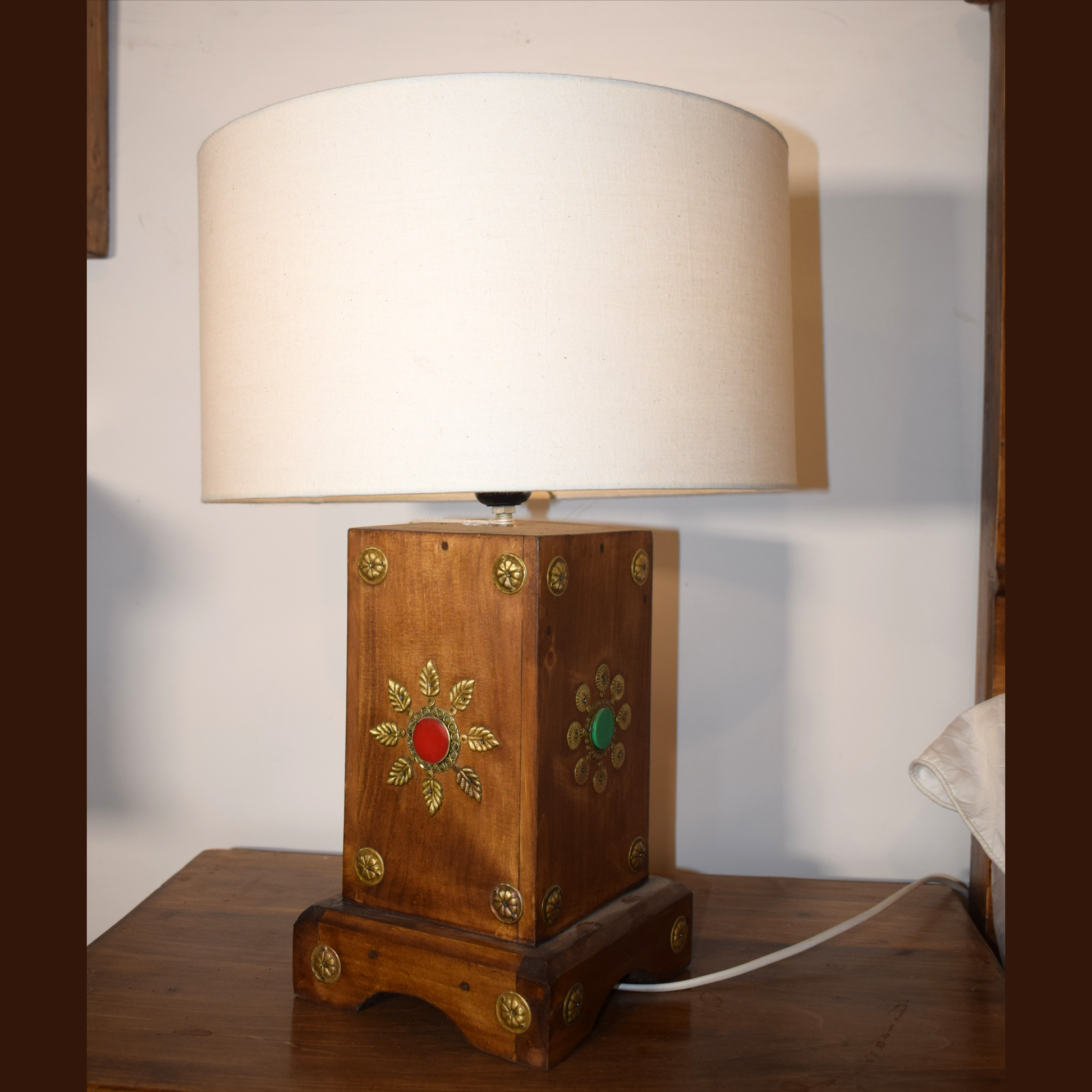 Turk Style Wooden Side Table Lamp Handmade With Stone and Brass Work H.F